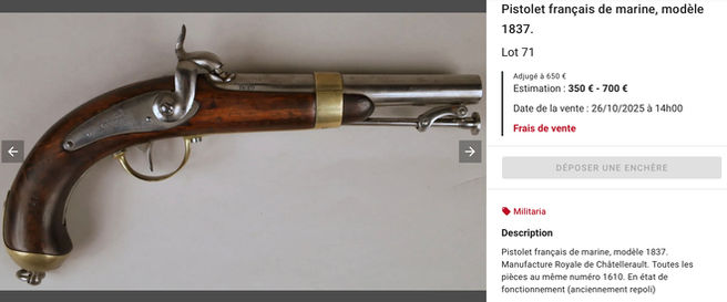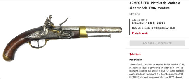 Pistolets à crochet de ceinture ou revolvers : il fallait être bien armé pour aller à l'abordage ou se défendre à terre. En très bon état, ces armes s'échangent à prix assez élevés, car mis à part certains modèles, elles ont été fabriquées en petites séries...