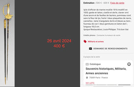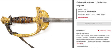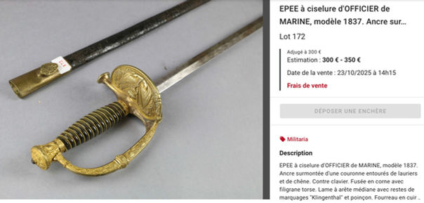 Voici une arme réservée aux officiers (et aux sous-officiers d'infanterie et d'artillerie de marine). Quelques idées de prix pour ces beaux objets...