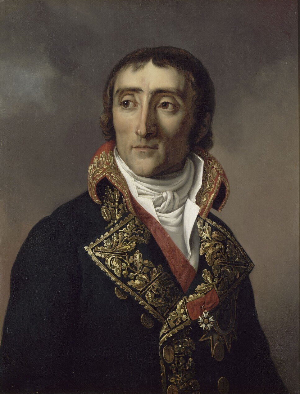 Car le vice-amiral Bruix reçut les insignes de Grand Officier de la Légion d'honneur lors d'une immense cérémonie organisée le 15 août 1804 au camp de Boulogne. Il faisait partie des tous premiers décorés ; il y eut 16 Grands Officiers ce jour-là. Le portrait se veut donc postérieur. Aussi, Bruix devrait être dans le grand uniforme défini par le décret impérial du 7 prairial an XII. C'est une anomalie courante, y compris dans les portraits contemporains, ce qui n'est pas le cas ici : des décorations y sont souvent ajoutées a posteriori.