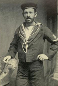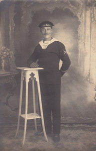 Voici ci-dessous quelques vues bien postérieures de marins étrangers en paletot : à gauche, des matelots allemands en 1914 (photo Soldaademohler) ; à droite un matelot anglais avant 1890, année de la suppression de la blue jacket (photo trouvée sur Internet) ; au centre un matelot français vers 1910, sous-marinier comme l'indique l'insigne sur le haut de la manche gauche. Le paletot donnait incontestablement une certaine classe aux marins de base...