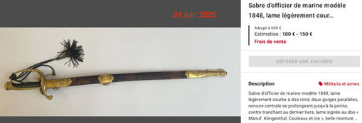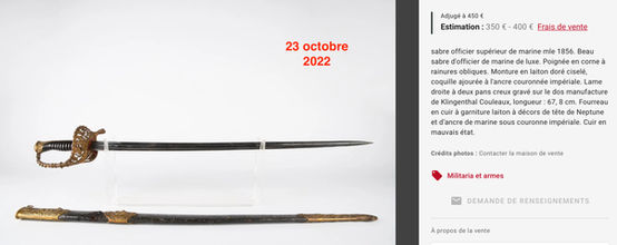 Sabres d'officier de marine 1848 courants et sabres 1848 modifiés 1902 (à une seule bélière, qui n'intéresseront donc que les collectionneurs)
